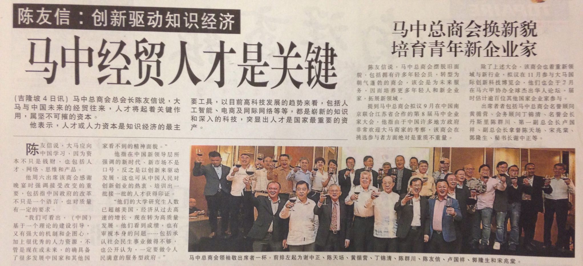 (吉隆坡4日讯)马中总商会总会长陈友信说,大马与中国未来的经贸往来,人才将起着关键作用,属坚不可摧的资本。