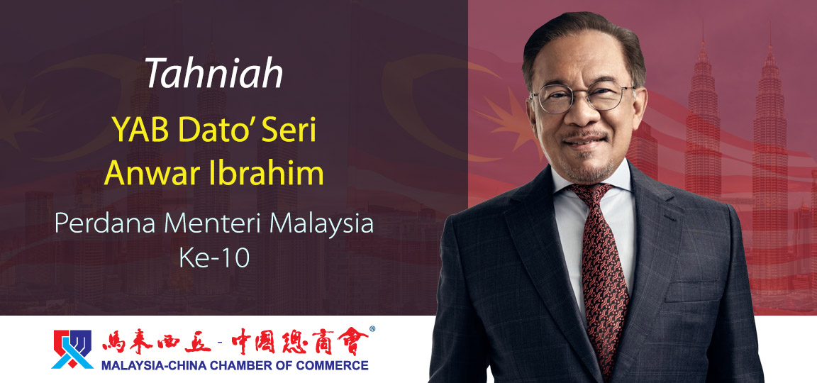 (吉隆坡讯)马来西亚-中国总商会(简称:马中总商会)对国家元首苏丹阿都拉陛下周四任命拿督斯里安华为第十任首相深表欢迎,同时对陛下倡议组建一个包含各政党、种族、宗教及区域的团结政府表示高度赞赏。