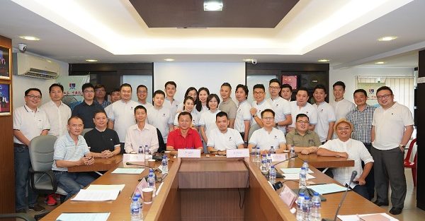 图说:马中总商会青企会在2019年常年会员大会结束之后合影留念,并正式宣布第五届青企会理事会解散,以进行第六届青企会理事选举。前排左起马中总商会秘书长谢中正、副总会长拿督林恒毅、颜登逸、第一副总会长卢国祥、青企会主席张柏垣、第一副主席林励肯以及马中总商会中央理事丁扬岗。