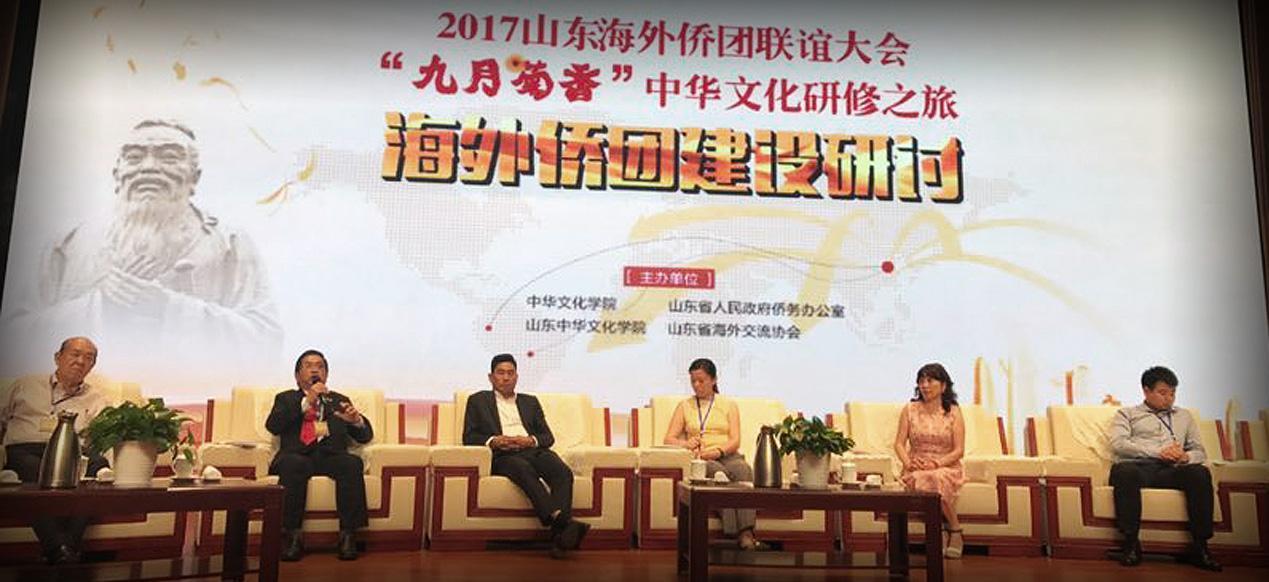 他日前受邀到中国济南出席”山东海外侨团建设研讨会”,发表谈话。该研讨会是2017年山东海外侨团联谊大会暨”九月菊香”中华文化研修之旅活动之一。