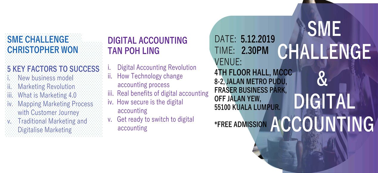 20 Nov 19 “SME Challenge & Digital Accounting” Talk Latest Announcements MCCC invited you and your partners, your co-workers, your employees, your friends and whoever you know in the related fields, to join our "SME Challenge & Digital Accounting" talk. Read More