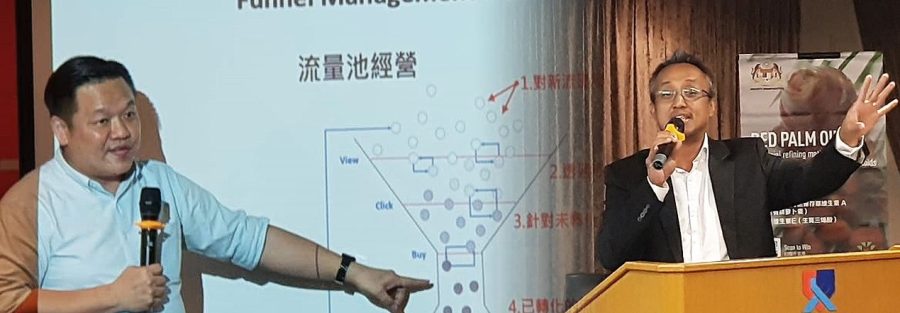 (Left) Yong Kai Ping: sharing knowledge on e-Commerce trend. (Right) Eugene Roy Joseph: sharing knowledge on Branding Strategy and IP.