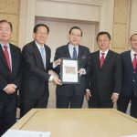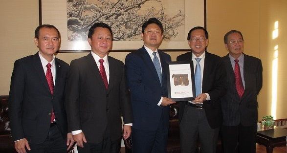 Cenderamata: Presiden MCCC, Tan Yew Sing (kedua dari kanan) menyampaikan cenderahati yang menggabungkan tiga budaya etnik utama di Malaysia kepada Duta Besar, Tuan Yang Terutama Bai Tian (tengah).