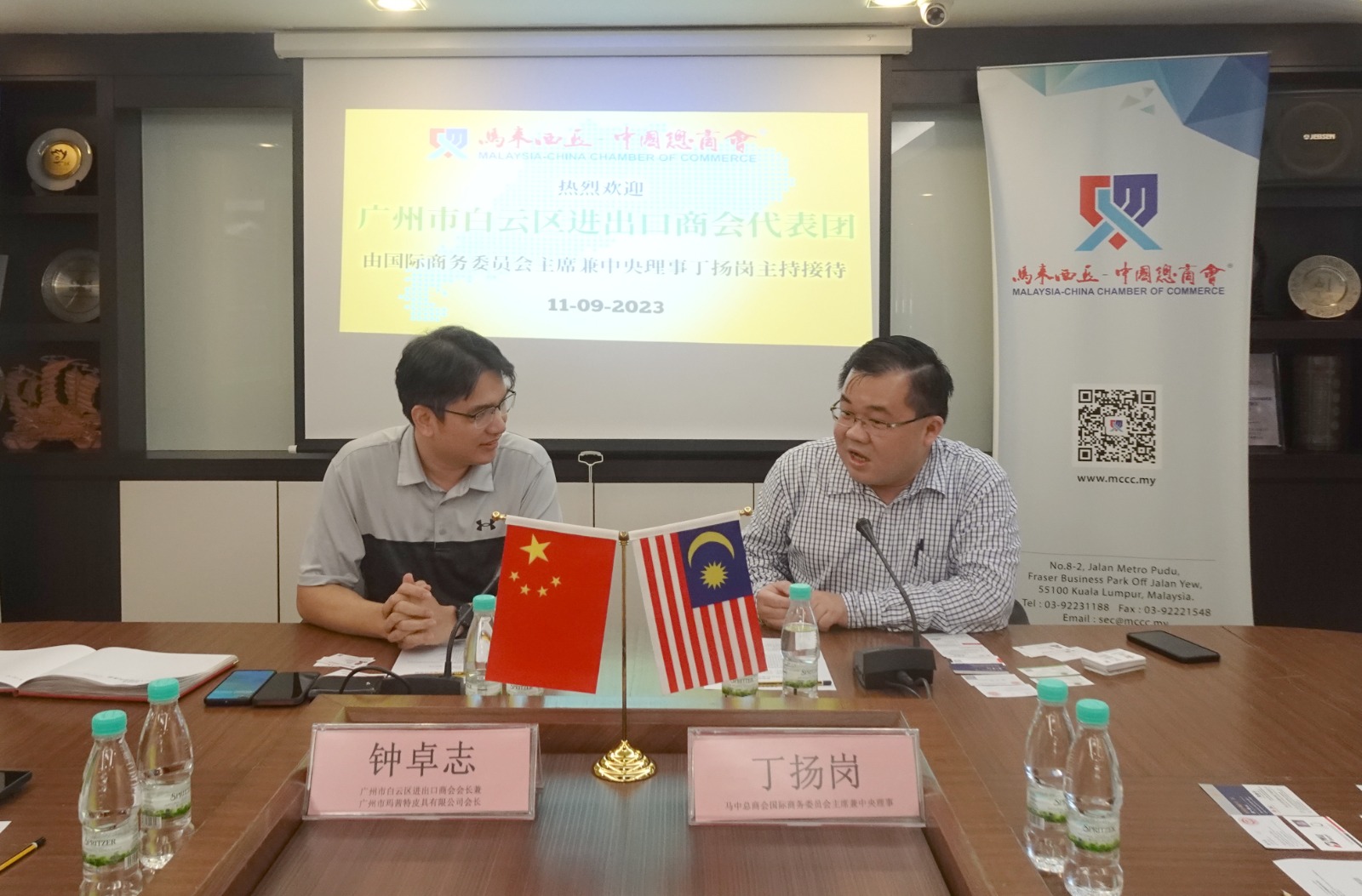 广州市白云区进出口商会会长钟卓志率领代表团拜访马来西亚-中国总商会,由本会国际商务委员会主席兼中央理事丁扬岗主持接待。